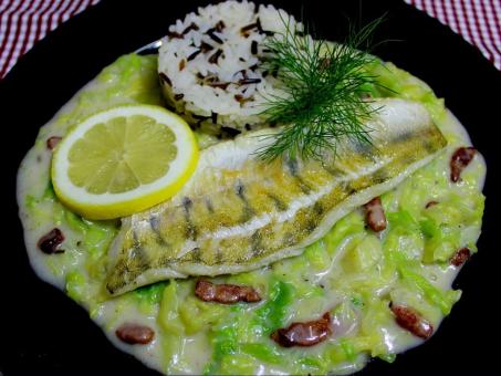 Gebratenen Zander auf Rahmwirsing vor.